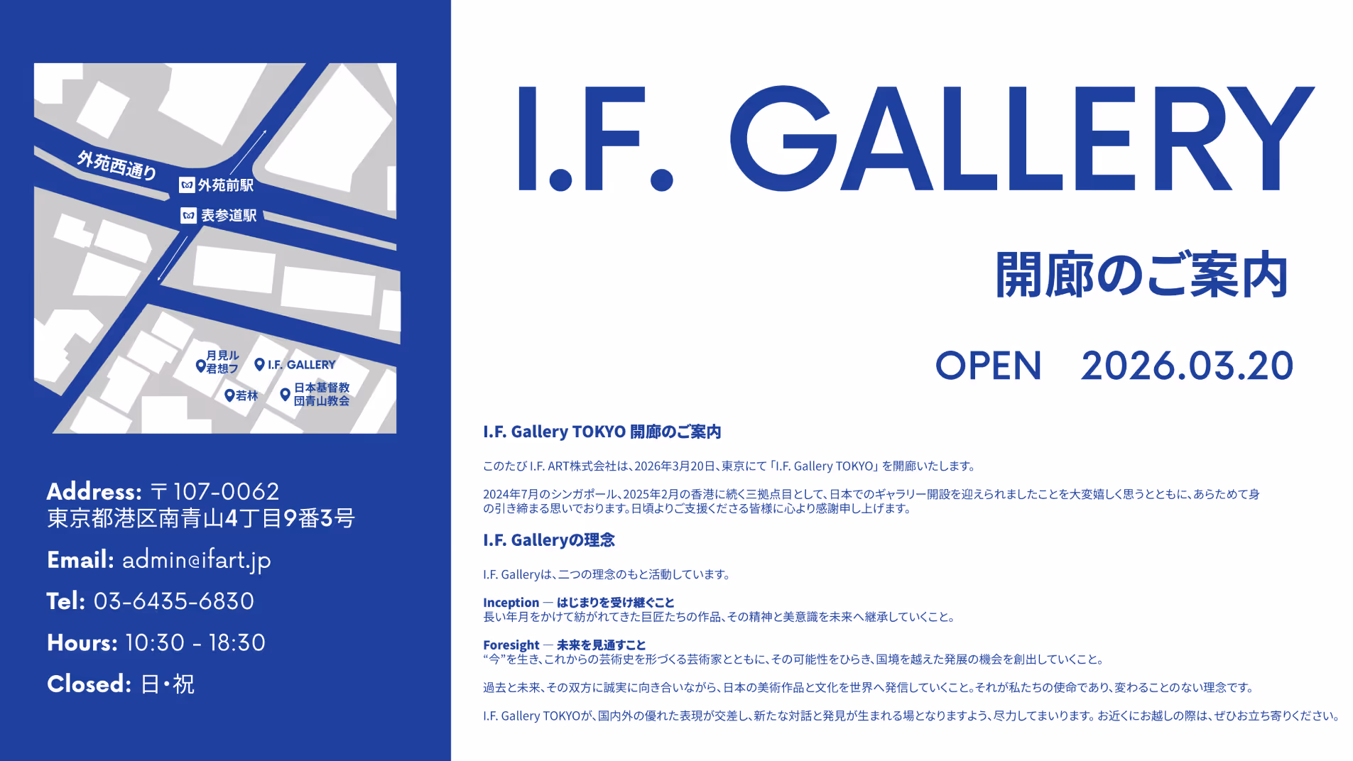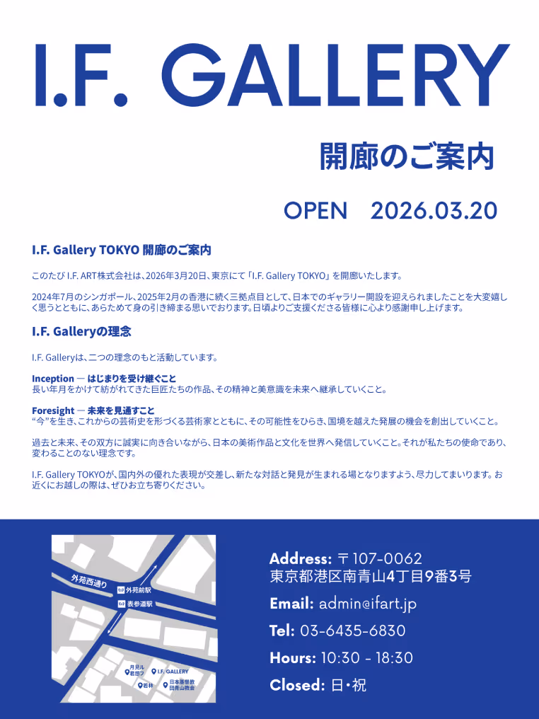 このウェブサイト上の全てのコンテンツ(テキスト、グラフィック、ロゴ、画像、ソフトウェアなど)は、I.F. Art Gallery Singapore and I.F. Art Gallery Hong Kong(総称して「I.F. Gallery Group」) またはそのコンテンツ供給者の財産であり、著作権、商標、その他の知的財産法によって保護されています。サイト上の任意の素材の無許可使用は固く禁じられています。